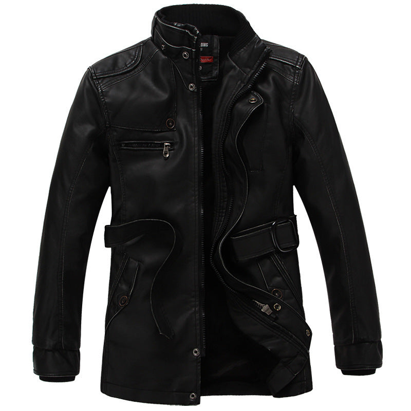 New Men'S Leather Jacket Thickened And Velvet Autumn And Winter Models - Color: Black, Size: 3XL