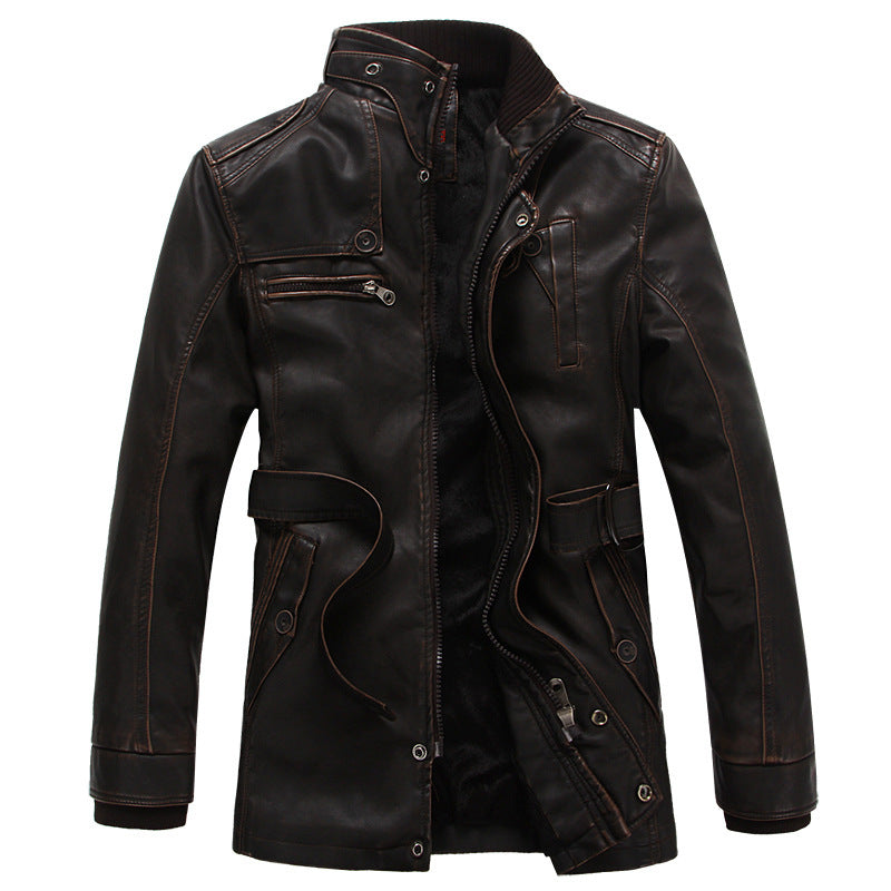 New Men'S Leather Jacket Thickened And Velvet Autumn And Winter Models - Color: Coffee, Size: 3XL